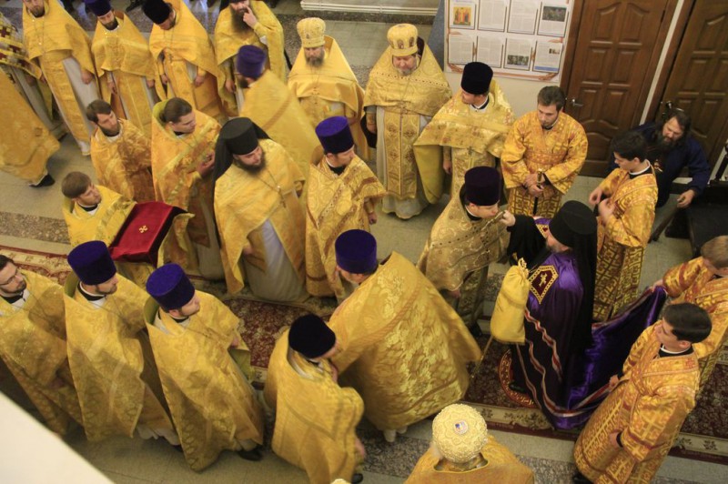 После Литургии владыка преподал собравшимся на соборную молитву благословение, а священнослужители и прихожане поздравили своего архипастыря со знаменательным днем.