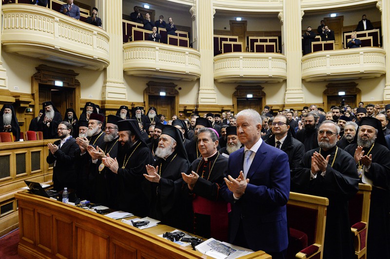 В президиуме присутствовали: Святейший Патриарх Московский и всея Руси Кирилл; Блаженнейший Патриарх Румынский Даниил; Блаженнейший Архиепископ Тиранский и всей Албании Анастасий; Блаженнейший Митрополит Чешских земель и Словакии Ростислав; викарий Патриарха Румынского епископ Варлаам, секретарь Священного Синода Румынской Православной Церкви.