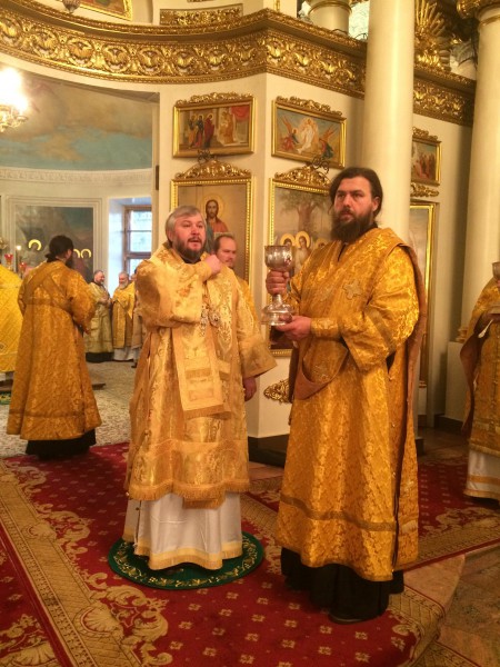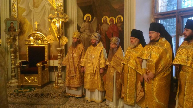 Блаженнейшему архипастырю сослужили митрополит Архангельский и Холмогорский Даниил, митрополит Тамасосский и Оринийский Исаия, епископ Шахтинский и Миллеровский Симон, архимандрит Алексий (Поликарпов), архимандрит Иоанн (Иоанну), духовенство и братия монастыря.