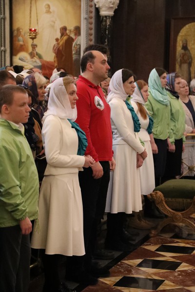 Проповедь перед причастием произнес председатель Синодального отдела по делам молодежи епископ Люберецкий Серафим.