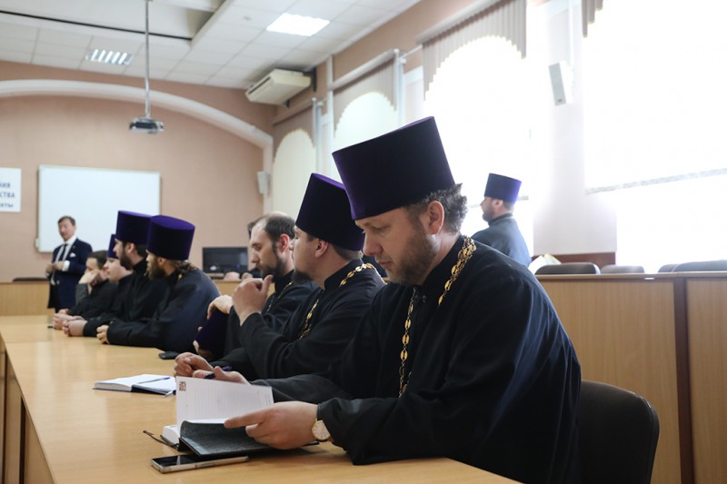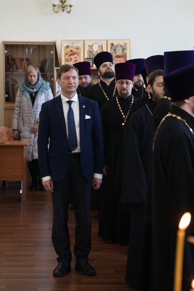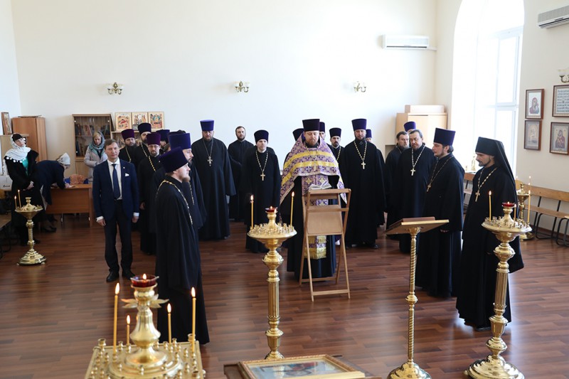 Первый день курсов для первого потока слушателей начался с соборно совершенного молебна на начало всякого дела в стенах домового Иоанно-Богословского храма института. Молитву совершил настоятель храма протоиерей Роман Амплеев. Затем состоялись лекции, согласно расписанию.