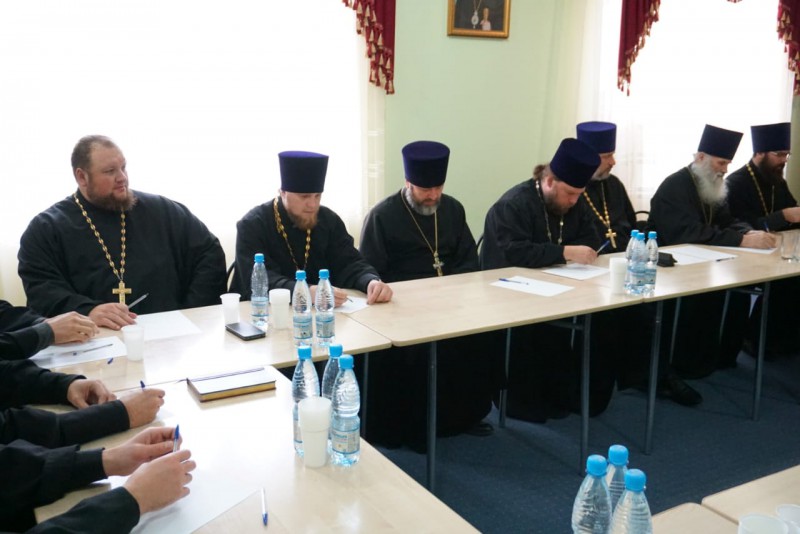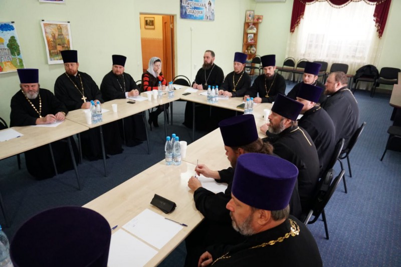 Далее духовенство обсудило деятельность отдела религиозного образования, в том числе предстоящее участие в XXIII Димитриевских образовательных чтениях в Ростове-на-Дону.