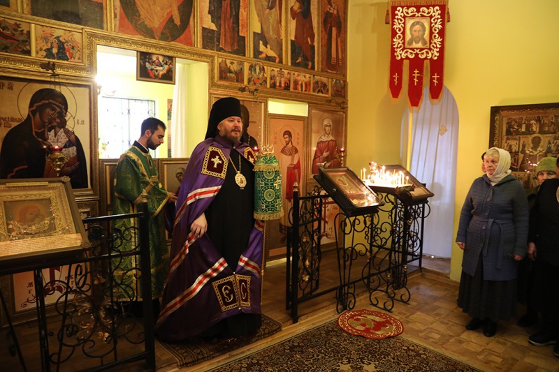 По завершении Литургии духовенство соборно совершило молебен перед иконой святой покровительницы храма, после чего архипастырь обратился к молящимся с поздравлением и духовным наставлением.