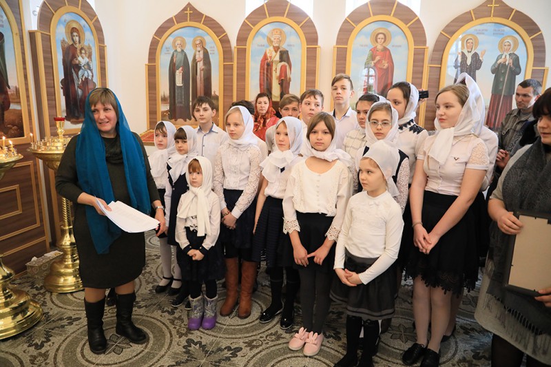 Духовенство и прихожан поздравили воспитанники воскресной школы храма, исполнив вокальные произведения и стихи.