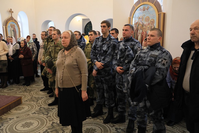 За Божественной литургией архиерею сослужили благочинный приходов Александровск-Грушевского округа протоиерей Сергий Яценко, настоятель храма иерей Георгий Болоцков, настоятель Георгиевского Архиерейского подворья хут. Киреевка протоиерей Георгий Болоцков, настоятель храма праведного Иосифа Обручника г. Шахты иерей Сергий Болоцков, иеродиакон Флавиан Васильев.