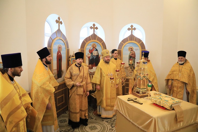 Совершив богослужение, Преосвященнейший владыка обратился с амвона к духовенству и мирянам с архипастырским словом, поблагодарил благотворителей и строителей за созидание и благоукрашение нового храма. Всем потрудившимся в деле строительства епископ Симон вручил благодарственные письма, а главного попечителя архиерей наградил епархиальной медалью «За заслуги перед Шахтинской епархией».