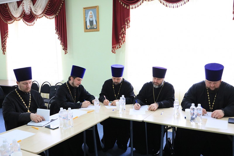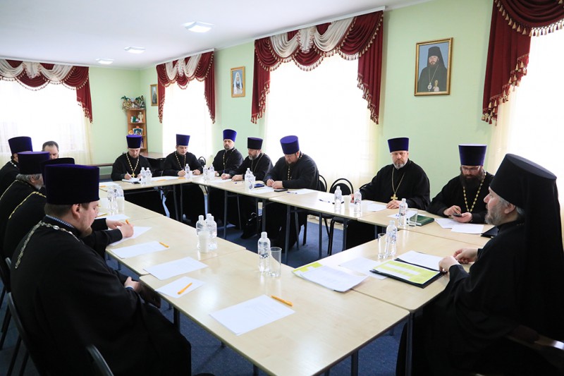 Основой заседания стало решение вопросов, которые поставил Архиерейский совет Донской митрополии перед епархиями. В список повестки включены обязательное проведение огласительных бесед и катехизаторские курсы для работников свечных лавок. Епископ Симон отмечает, что зачастую первый человек, который встречается людям в храме – это церковный работник, который, конечно, должен уметь дать ответ на распространенные вопросы о вере, Церкви, таинствах. «…будьте всегда готовы всякому, требующему у вас отчета в вашем уповании, дать ответ с кротостью и благоговением» (Первое послание Петра. Глава 3, ст. 15). Архиерей дал поручение подготовить план проведения курсов и подобрать актуальные темы для обучения.