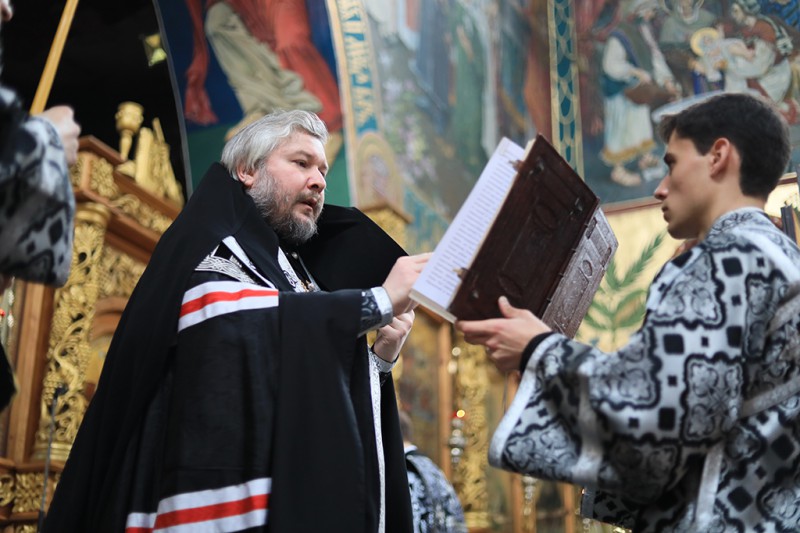 Архипастырь на солее Покровского кафедрального собора впервые в этом году совершил чтение молитвы преподобного Ефрема Сирина с великими поклонами.