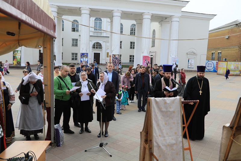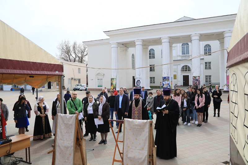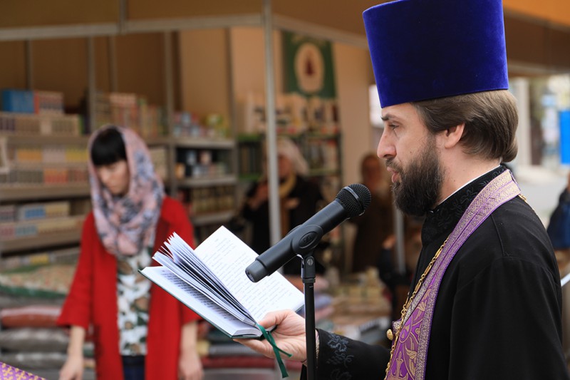 Перед открытием выставки все ее участники помолились о благополучии мероприятия. Молебен совершили благочинный приходов Александровск-Грушевского округа протоиерей Сергий Яценко и настоятель храма в честь иконы Божией Матери Одигитрия пос. Таловый иерей Андрей Ковалев.
