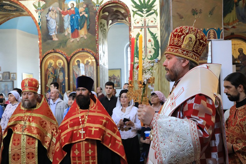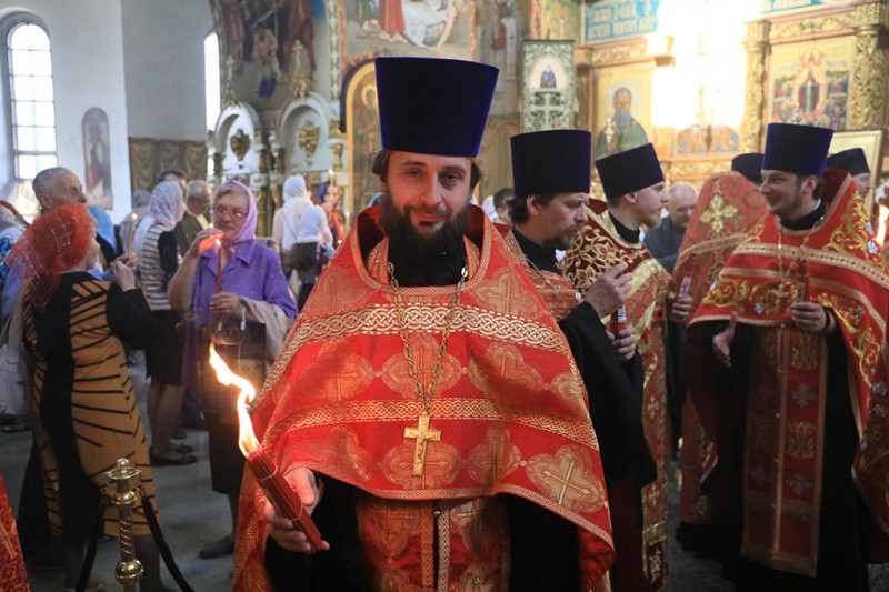 Преосвященнейший епископ Симон совершил пасхальную великую вечерню архиерейским чином. На богослужение прибыли духовенство и верующие со всей Шахтинской епархии.