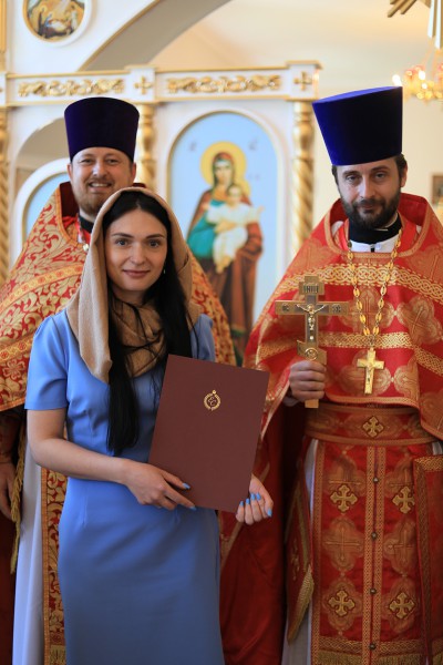 От имени Правящего архиерея Шахтинской епархии Преосвященнейшего епископа Симона духовенство вручило благодарственные письма сотрудникам вуза и представителям фирм, участвующим в восстановлении храма.