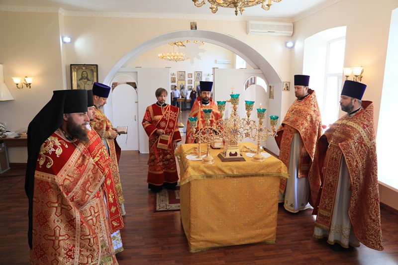 Праздничное богослужение совершили председатель епархиального отдела образования Шахтинской епархии протоиерей Сергий Яценко; исполняющий обязанности заведующего кафедры «Православная культура и теология» иерей Владислав Касьянов; настоятель храма при институте, старший преподаватель кафедры протоиерей Роман Амплеев; настоятель храма в честь иконы Божией Матери Всех скорбящих радосте г. Красный Сулин иеромонах Никон Синюшкин; настоятель храма в честь иконы Божией Матери Одигитрия пос. Таловый иерей Андрей Ковалев; настоятель храма в честь иконы Божией Матери Взыскание погибших пос. Сидорово-Кадамовский иеромонах Варнава (Максименко); клирик Покровского кафедрального собора г. Шахты иеродиакон Флавиан (Васильев).