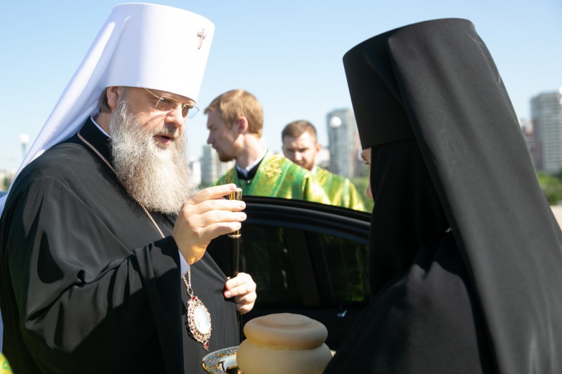 Глава Донской митрополии поблагодарил всех, кто принимал участие в строительстве часовни. В память об этом событии, в благодарность за труды правящий архиерей преподнес в дар настоятельнице монастыря игумении Рахиль (Ковалевой) наперсный крест.