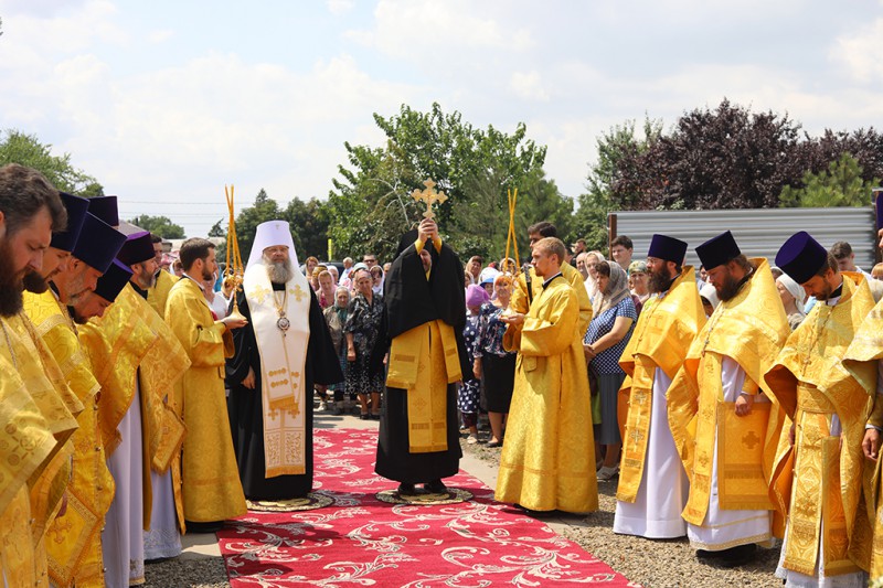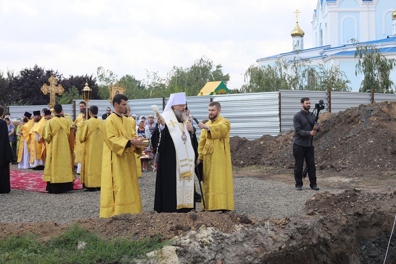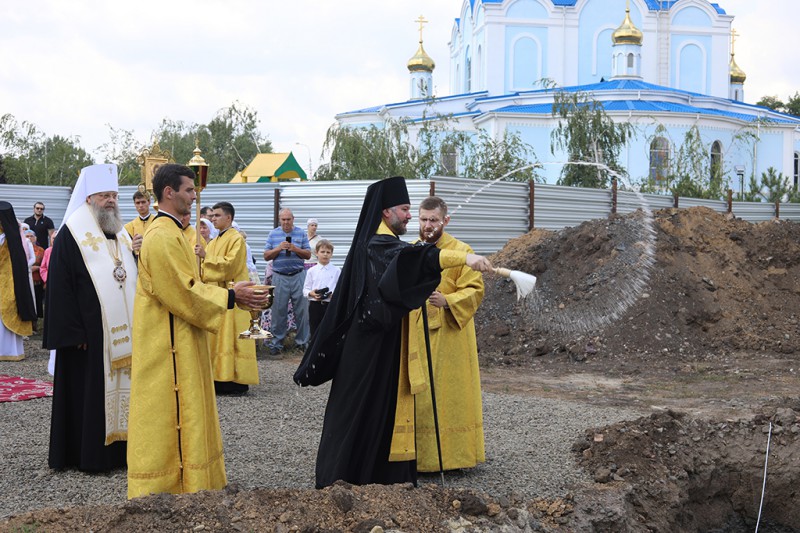 Затем состоялся крестный ход к месту строительства, где митрополит Ростовский и Новочеркасский Меркурий и епископ Шахтинский и Миллеровской Симон совершили чин молебного пения перед началом всякого дела.