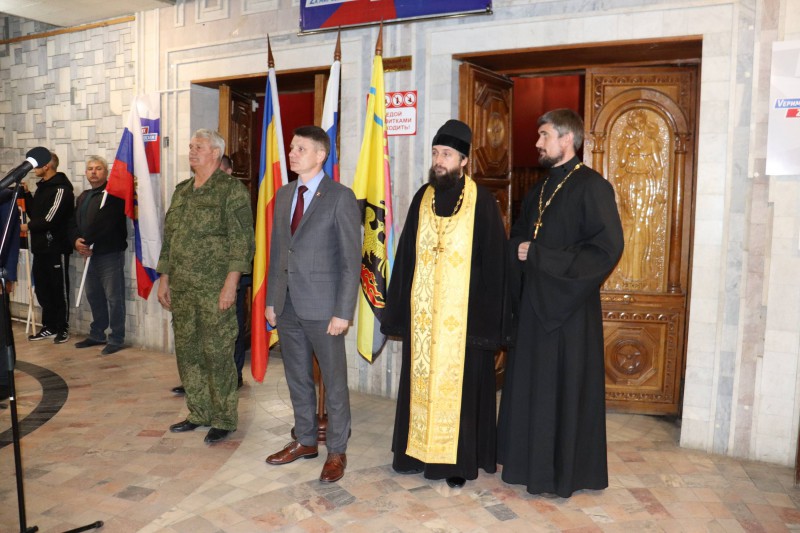 Благочинный приходов Александровск-Грушевского и Нижнедонского округов протоиерей Сергий Яценко и настоятель храма святителя Николая Чудотворца пос. Аютинский иерей Иоанн Трофимов побывали в мобилизационном пункте, пообщались с мобилизованными, их родственниками и теми, кто был рядом в этот день.