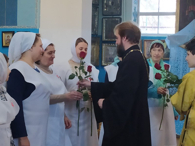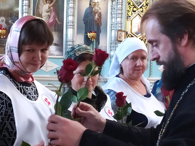 Духовник Марфо - Мариинского Сестричества при храме Архистратига Михаила п. Каменоломни Октябрьского района, благочинный приходов Нижнедонского округа протоиерей Сергий Яценко, обратился к сестёрам милосердия со словами благодарности за их труд в оказании помощи людям попавшим в тяжёлые жизненные ситуации, поздравил с Международным днем добровольца и пожелал помощи Божией в благородном служении ближним.