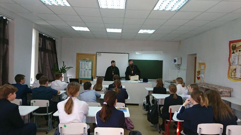 Председатель Миссионерского отдела Шахтинской епархии иерей Иоанн Трофимов и настоятель храма вмч. Георгия Победоносца поселка Новозарянский иерей Сергий Липень провели беседу со школьниками.