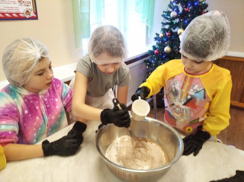 К великому празднику Рождества Христова, при поддержке сестёр Марфо - Мариинского Сестричества храма Архистратига Михаила п. Каменоломни, воспитатели социального приюта для детей и подростков Октябрьского района "Огонек" провели урок " Мастерская сладких подарков", на котором дети совместно со взрослыми выпекали рождественские угощения.