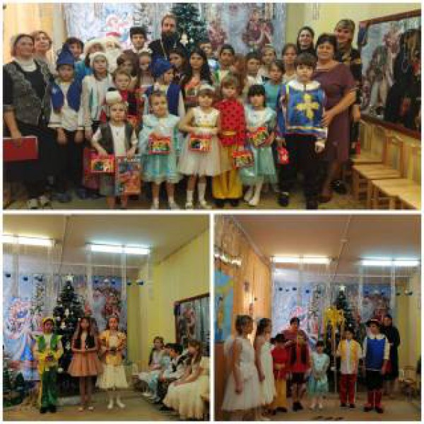 В празднике вместе с детьми участвовали и сказочные персонажи, которых представляли старшие ребята из воскресной школы, а так же культ - организатор районного Дворца культуры Онищенко Е.Ю.Театрализованное представление сопровождалось рождественскими стихами, песнями, конкурсами.
