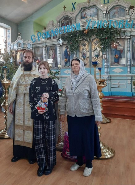 Поздравил с великим праздником Рождества Христова, подарим ребятам сладкие подарки и передал в школьную библиотеку детскую литературно-художественную и научно-популярную литературу о храмах и монастыря Православной Церкви.