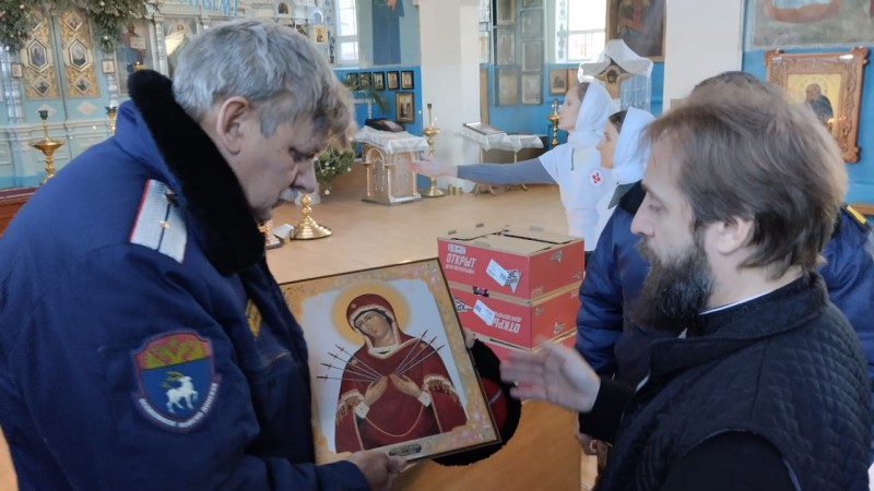 По просьбе военнослужащих, благочинный приходов Нижнедонского округа протоиерей Сергий Яценко передал на передовую образ Пресвятой Богородицы и попросил передать, что во всех храмах совершаются молебны, на которых возносятся молитвы не только о воинах и всех защитниках Отечества нашего, но и прошения о том, чтобы Многомилостивый Господь в заповедех Своих их утвердил, крепость духа им низпослал, от смерти, ран и пленения сохранил, и даровал возможность вернуться к своим близким и родным.