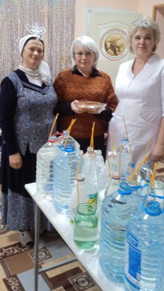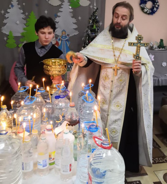 Священник совершил чин великого освящения воды, поздравил всех с днем Богоявления Господня и обратился к молящимся с пастырским словом.
