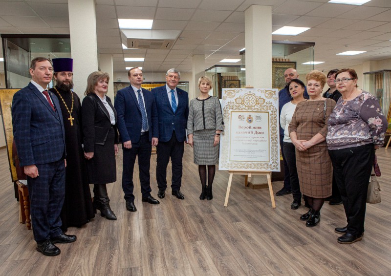 Шахтинская епархия по благословению Преосвященнейшего Симона, епископа Шахтинского и Миллеровского, в ответ на просьбу Председателя Собрания депутатов – главы Октябрьского района Евгения Луганцева, составила и, при участии сотрудников районного музея, подготовила к экспозиции собрание предметов церковной станины казачьего Дона. Экспозицию формировали благочинный Александровск-Грушевского и Нижнедонского благочиний протоиерей Сергий Яценко, епархиальный дрелехранитель И. Г. Шарков при участии духовенства епархии. Епархиальная выставка «Верой жив казачий Дон: церковная старина как свидетельница народного благочестия» концептуально объединяет свидетельства благочестия казаков Дона, на ней представлены святыни и евлогии, предметы церковного обихода и народной веры со всей территории Шахтинской епархии.