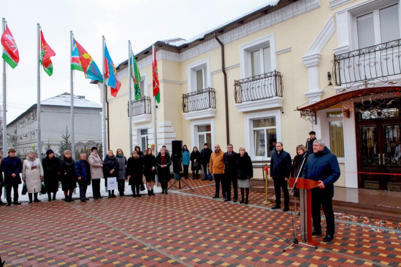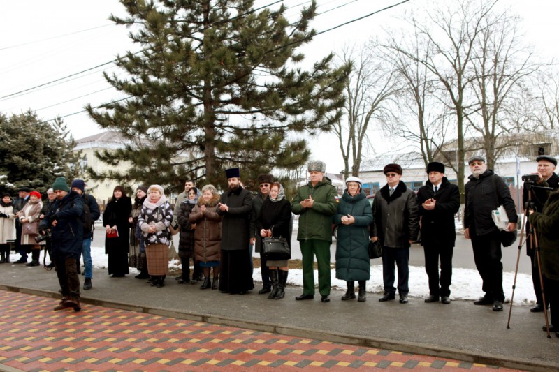 На торжественном открытии присутствовали: Председатель Собрания депутатов – глава Октябрьского района Евгений Луганцев, глава Администрации Октябрьского района Людмила Овчиева, заместитель министра культуры Ростовской области Андрей Молодшев, начальник Управления записи актов гражданского состояния Ольга Исаенко, член Союза художников, Союза дизайнеров России, архитектор Юрий Бессмертный, благочинный приходов Нижнедонского округа протоиерей Сергий Яценко, военный комиссар г. Шахты и Октябрьского района Иван Вансович, руководитель Ростовского отделения Императорского Православного Палестинского Общества Людмила Лимаренко, секретарь Ростовского отделения ИППО, древлехранитель Шахтинской епархии, старший преподаватель ИСОиП (филиала) ДГТУ в г. Шахты Илья Шарков, действительные члены ИППО, жители района.
