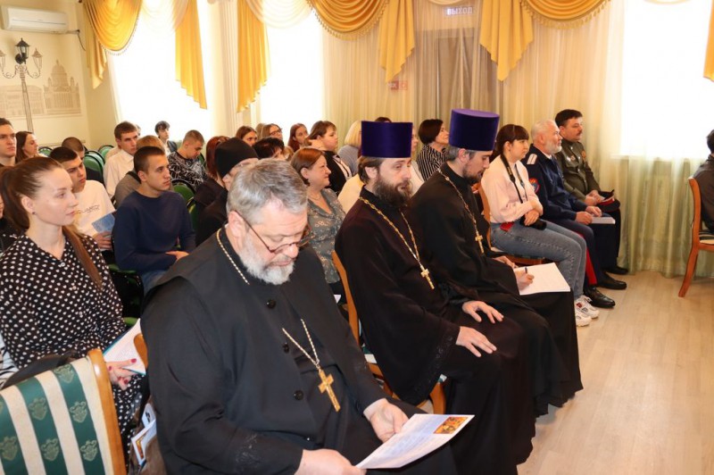 С кратким словом перед собравшимися выступила Пилипенко Лидия Ивановна, заведующая кафедрой социальной работы и педагогического образования филиала ЮФУ в г. Новошахтинске, к.ф.н., доцент, которая рассказала о молодежных и православных инициативах ЮФУ и пригласила присутствующих поступать в филиал учиться.