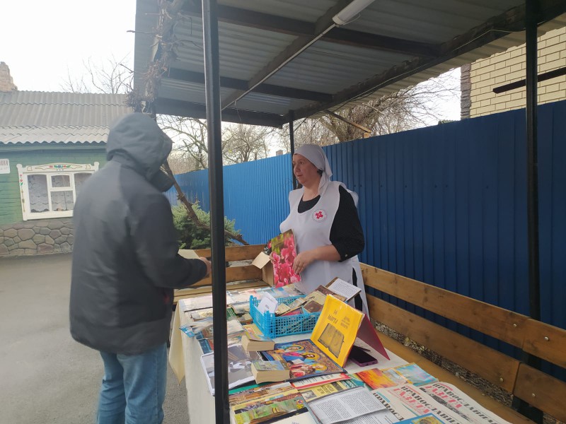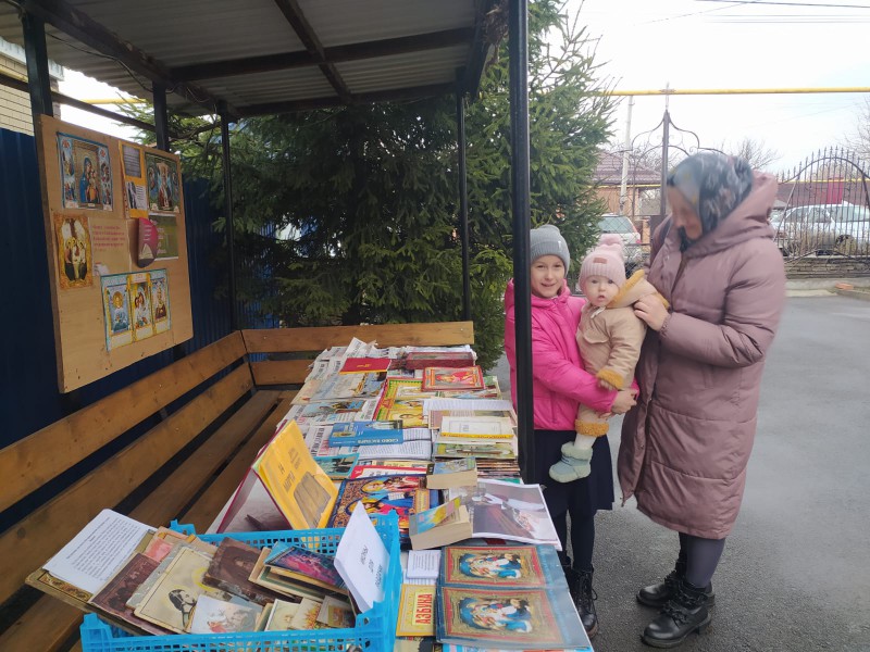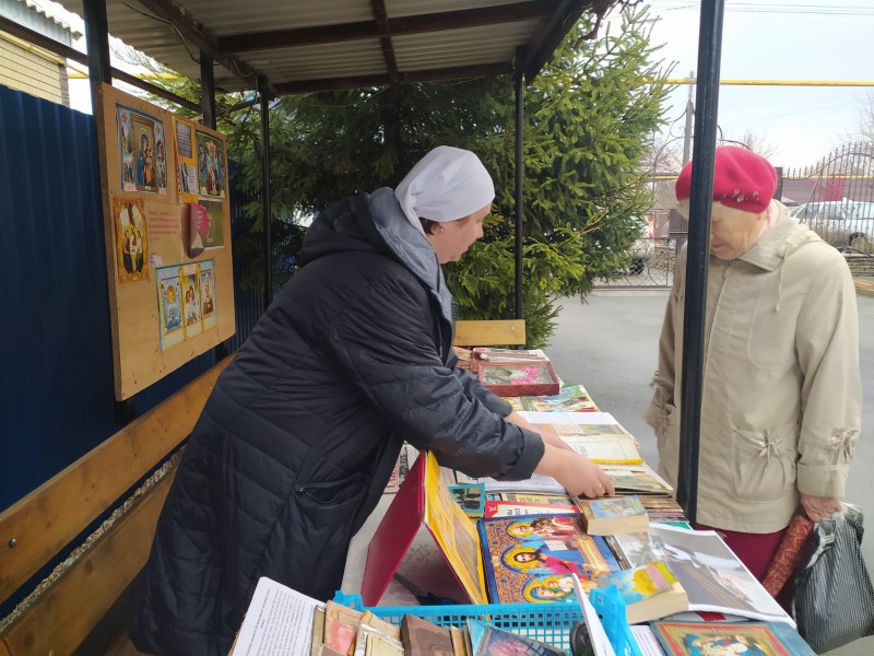 На территории храма сёстрами милосердия Марфо - Мариинского Сестричества для прихожан была подготовлена выставка и организована благотворительная раздача православной литературы, журналов и буклетов.