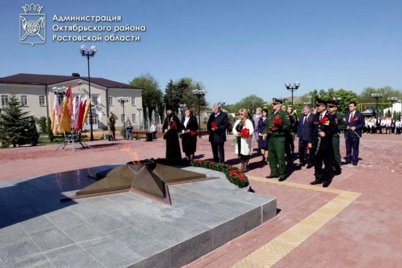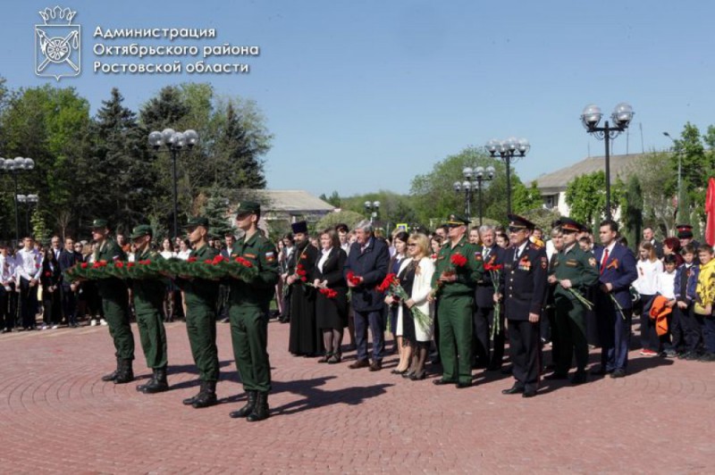 В честь 78-ой годовщины Победы нашего народа в Великой Отечественной войне в Октябрьском районе состоялось возложение цветов, венков и гирлянды в п.Каменоломни к Вечному огню на площади 50-летия Победы, к Аллее Героев и к памятнику "Павшим воинам Великой Отечественной войны".