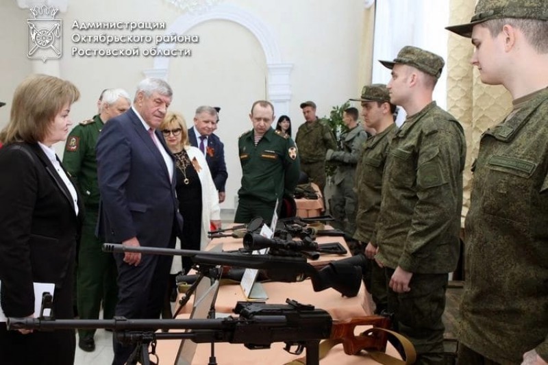 В фойе РДК для всех участников районного мероприятия была организована выставка статического оружия, военных экспонатов из фондов Краеведческого музея, музеев образовательных учреждений Октябрьского района.
