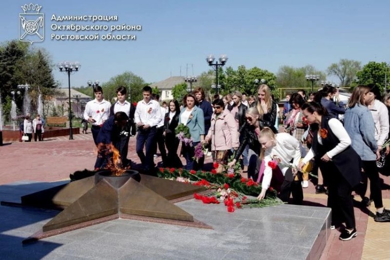 В честь 78-ой годовщины Победы нашего народа в Великой Отечественной войне в Октябрьском районе состоялось возложение цветов, венков и гирлянды в п.Каменоломни к Вечному огню на площади 50-летия Победы, к Аллее Героев и к памятнику "Павшим воинам Великой Отечественной войны".