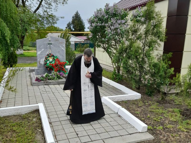 В День Победы, на месте захоронения воинов-освободителей хутора Красный Кут, протоиерей Сергий Сергошин отслужил заупокойную литию.