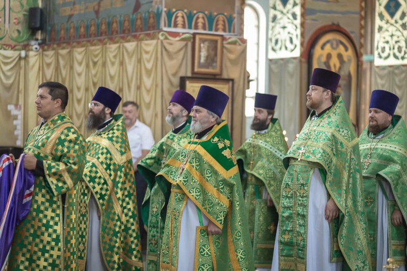Его Преосвященству сослужило духовенство Шахтинской епархии.