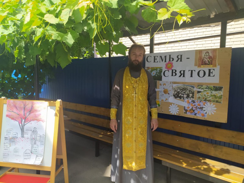 После Божественной литургии настоятель храма, благочинный приходов Нижнедонского округа храма протоиерей Сергий Яценко поздравил молодые семейные пары и молодёжный актив семейного клуба "Верность".