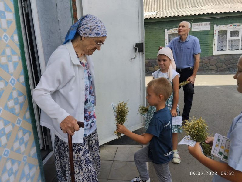 К празднику дети подготовили и оформили для прихожан фотозону и подарили прихожанам храма букеты цветов.