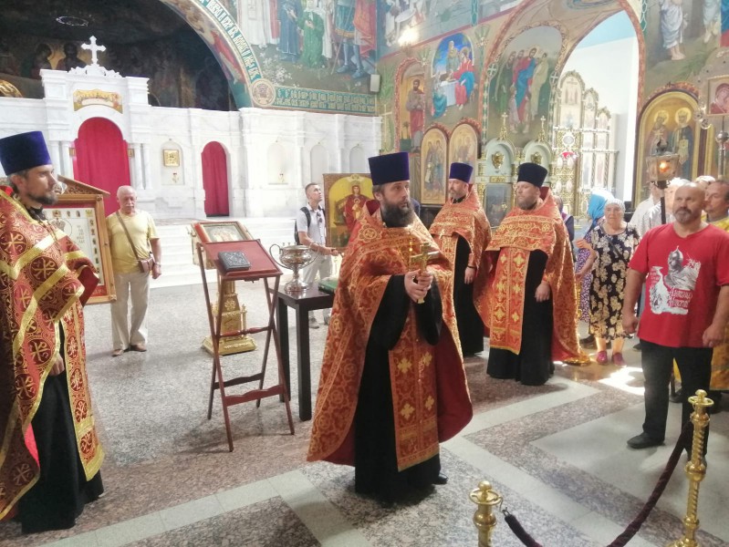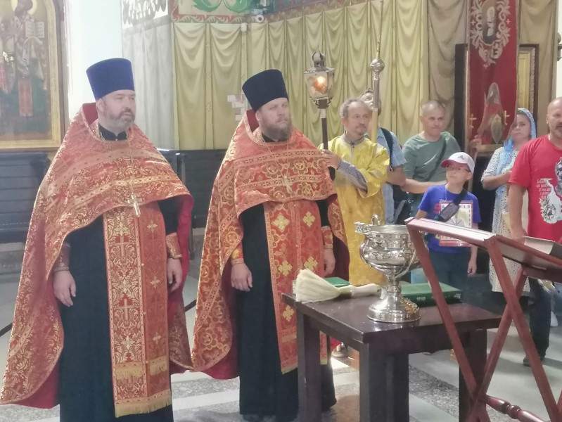 На Соборной площади крестоходцев встречали колокольным звоном. В Покровском кафедральном соборе состоялся торжественный молебен, который совершили благочинный приходов Александровск - Грушевского и Нижнедонского округов протоиерей Сергий Яценко, настоятель Никольского храма г. Шахты иерей Иоанн Трофимов, настоятель храма в честь иконы Божией Матери Одигитрия пос. Таловый иерей Андрей Ковалев и клирик Покровского кафедрального собора г. Шахты протоиерей Роман Бирюков.