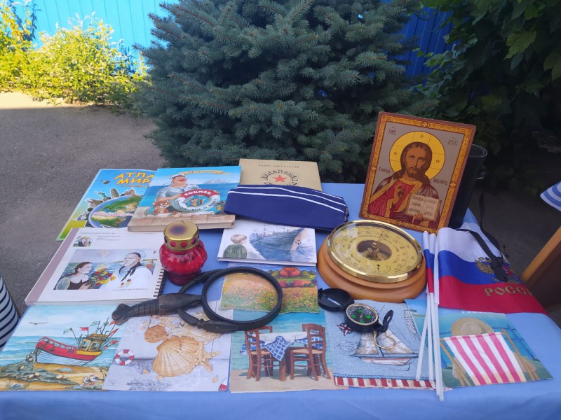 В рамках мероприятия был проведен мастер-класс по изготовлению бумажных корабликов «Флотилия юных моряков». Украшением стала выставка, где была представлена морская атрибутика: бинокль, компас, барометр, пилотки, тельняшки . Книги о море и моряках, репродукции картин с морским пейзажем стали хорошим дополнением к рассказу о святом праведном Федоре Ушакове.