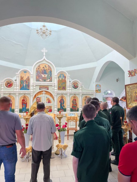 Настоятель храма иерей Сергий Липень совершил молебен перед образом "Донской" иконы Пресвятой Богородицы и обратился к военнослужащим с пастырским, в котором сказал: