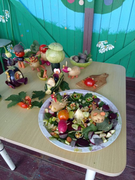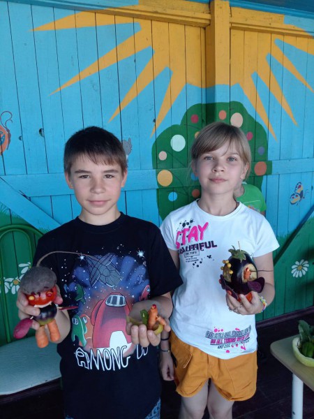 В завершении встречи, воспитатели подготовили для детей познавательно - игровую программу о традициях русской народной культуры. Ребята, при помощи воспитателей, сделали своими руками к празднику поделки из овощей и фруктов, и организовали выставку.