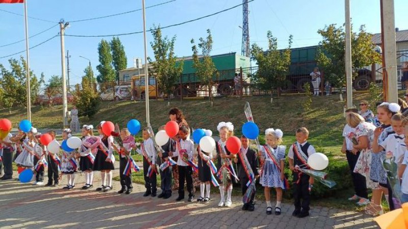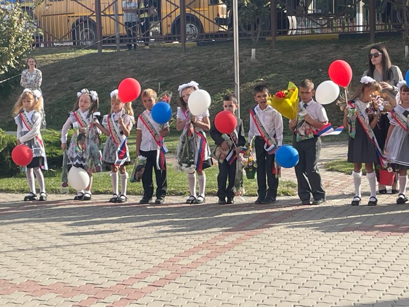 Утро в школе началось традиционной линейкой, первым звонком и морем цветов.