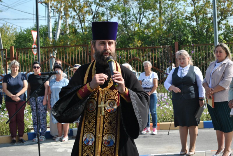 По окончанию торжественного открытия, благочинный приходов Нижнедонского округа протоиерей Сергий Яценко совершил чин освящения памятной доски и краткую литию по убиенному войну.