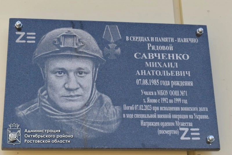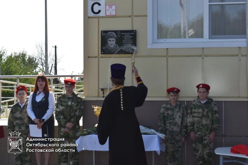 В хуторе Яново-Грушевский Красюковского сельского поселения Октябрьского района прошел митинг, посвященный открытию памятной мемориальной доски выпускнику школы №71 Савченко Михаилу Анатольевичу, героически погибшему при исполнении воинского и служебного долга в Специальной военной операции на Украине.