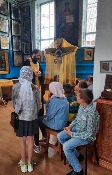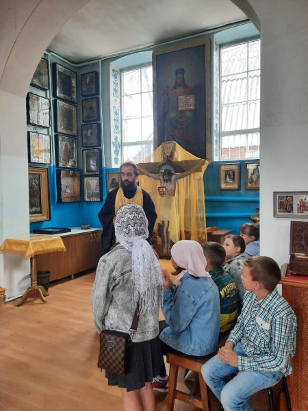 Благочинный приходов Нижнедонского округа протоиерей Сергий Яценко провел с детьми беседу и благословил их на "разумение доброго и душеполезного учения".
