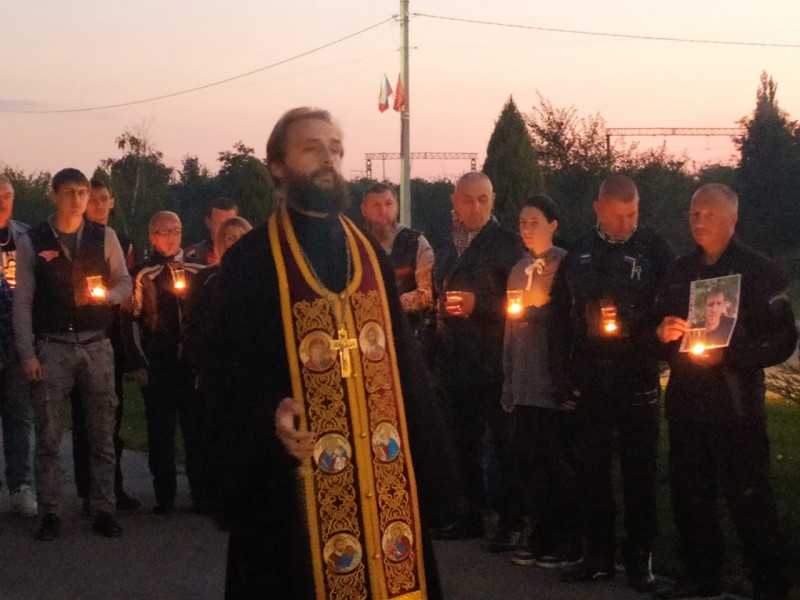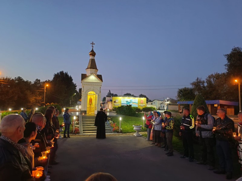 В совместной молитве приняли участие местные мотоциклисты и байкеры. Со свечами в руках и молитвой они вспомнили своих товарищей, погибших в авариях.