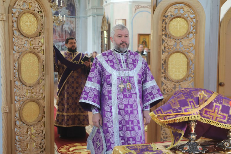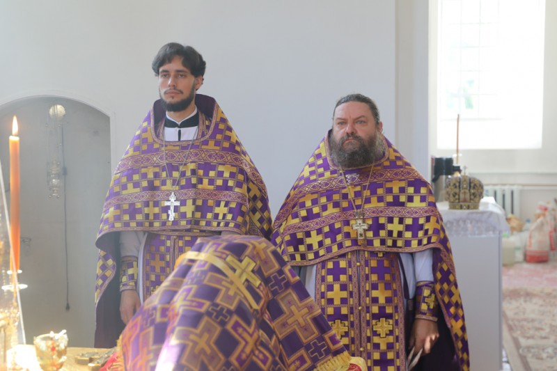 Его Преосвященству сослужили настоятель храма протоиерей Константин Федосеев, клирик храма протоиерей Петр Почтовый, иерей Михаил Дубянский и диакон Трофим Осяк.