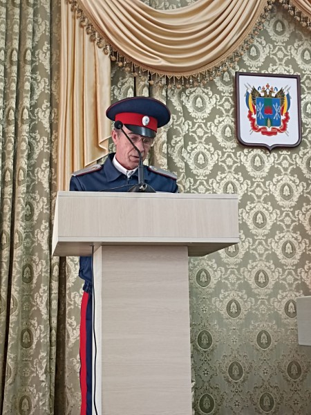 Далее, юртовой атаман Анатолий Гудков отчитался об итогах своей деятельности за период с 2019 по 2023 гг. Доклад включал в себя информацию по всем направлениям работы казачьих обществ: молодежь и взаимодействие с Православной Церковью, охрана окружающей среды и работа с призывниками, участие казаков в охране правопорядка.