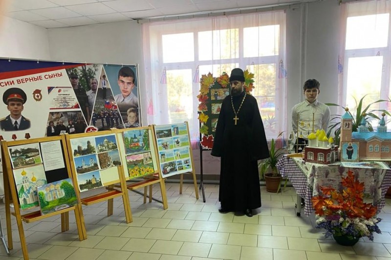 Открытый урок «Под Покровом Богородицы» был проведен в МБОУ СОШ № 23 п. Красногорняцкий Октябрьского района для учащихся 7 класса. На встрече присутствовали: директор школы Галина Михайловна Ушакова и благочинный приходов Нижнедонского округа протоиерей Сергий Яценко.
