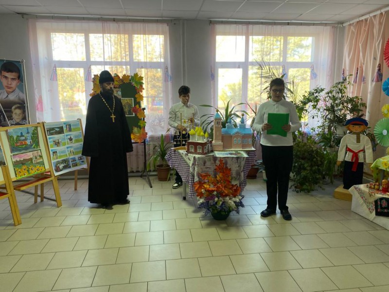 Учитель ОДНКНР Козина Н.В. рассказала ребятам о храмах в честь Покрова Пресвятой Богородицы, в том числе о тех, которые расположены на территории Октябрьского района. На уроке были представлены макеты православных храмов, которые сделали учащиеся общеобразовательных учреждений в преддверии юбилейных мероприятий к 85-летию со дня образования Октябрьского района «Храмы моей малой Родины».